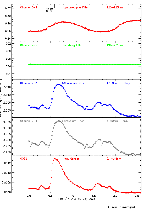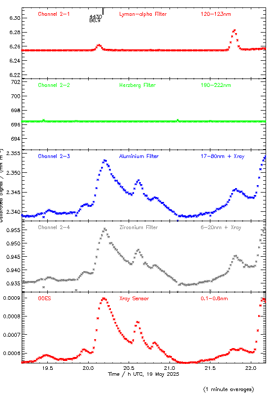 event begin max end class region ----- ----- ----- ----- ----- ------ 4340 00:24 00:36 00:50 C1.2 4360 04:19 04:32 04:39 C2.3 4380 05:28 05:42 05:53 C1.2 4400 08:13 08:21 08:26 M3.2 4420 18:37 18:44 18:52 B6.6 4430 20:01 20:11 20:22 B8.9 4440 22:01 22:09 22:18 B8.9 4460 22:18 22:25 22:31 B9.8 4089